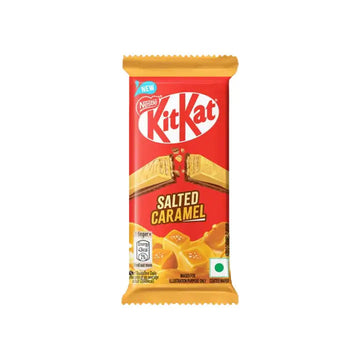 KitKat Salted Caramel is a chocolate bar with a crispy wafer, salted caramel filling, and milk chocolate coating